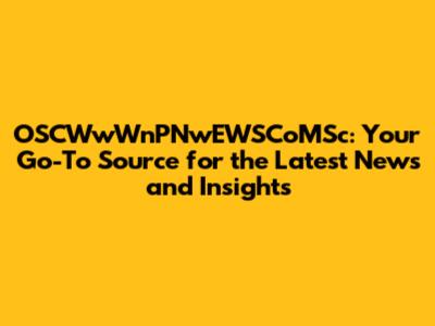 Exploring the Latest OSCWwWnPNwEWSCoMSc News and Updates