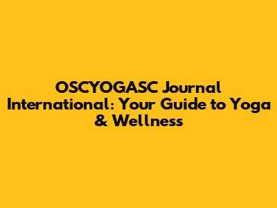 OSCYOGASC Journal International: Your Guide To Yoga & Wellness