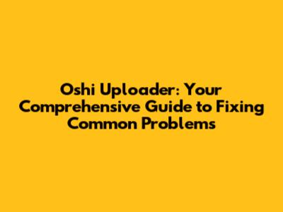 Step-by-Step Solutions to Common Oshi Uploader Problems