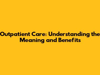 Outpatient Care: Understanding The Meaning And Benefits
