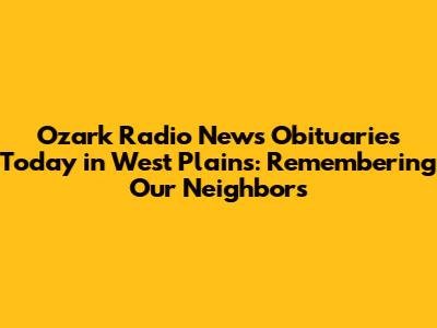Ozark Radio News Obituaries Today In West Plains