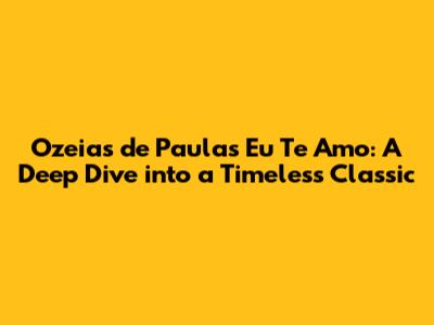 Hey music lovers! Today, we're diving deep into a track that's touched countless hearts: Ozeias de Paula's 'Eu Te Amo'. This song isn't just a collection of notes and lyrics; it's a journey, an emotion, a feeling. If you're here, chances are you already know the magic of this tune, but let's take a closer look at why it resonates so strongly with so many people. We'll explore the musicality, the emotional impact, and the lasting legacy of 'Eu Te Amo'. Get ready to rediscover the beauty of this classic, and maybe, just maybe, fall in love with it all over again.
