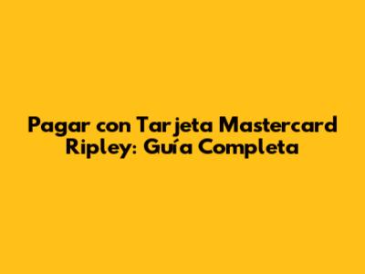 Pagar Con Tarjeta Mastercard Ripley: Guía Completa