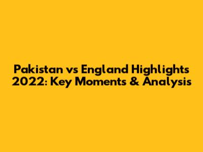 Pakistan Vs England Highlights 2022: Key Moments & Analysis