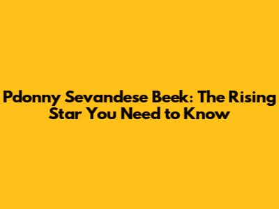 Pdonny Sevandese Beek: The Rising Star You Need To Know