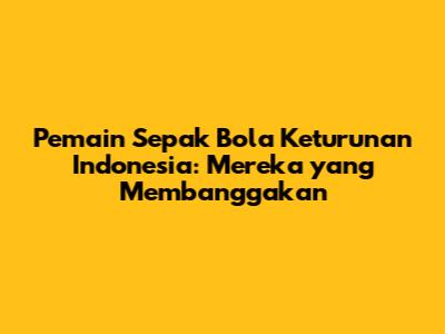 Pemain Sepak Bola Keturunan Indonesia: Siapa Saja Mereka?