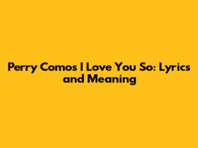 Hey music lovers! Today, we're diving deep into a classic tune that's captured hearts for decades: "I Love You So" by the legendary Perry Como. You know, the guy with the smooth voice that could melt butter? Yeah, him! This song isn't just a catchy melody; it's a symphony of affection, a heartfelt declaration that resonates with anyone who's ever been in love. So grab your favorite beverage, get comfy, and let's unpack the magic behind these iconic lyrics. We'll break down what makes this song so special, explore its enduring appeal, and, of course, sing along to every word. Get ready to feel the love, guys!