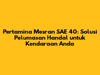 Pertamina Mesran SAE 40 adalah salah satu jenis pelumas mesin yang diproduksi oleh Pertamina, perusahaan energi terkemuka di Indonesia. Pelumas ini dikenal luas di kalangan pemilik kendaraan bermotor karena kualitasnya yang terpercaya dan kemampuannya dalam menjaga performa mesin. Artikel ini akan membahas secara mendalam mengenai apa itu Pertamina Mesran SAE 40, fungsi utamanya, keunggulan yang ditawarkan, serta aplikasi yang direkomendasikan untuk memastikan mesin kendaraan Anda tetap prima.