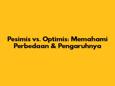 Pesimis dan optimis adalah dua cara pandang yang berbeda terhadap dunia dan diri sendiri. Sikap pesimis cenderung fokus pada sisi buruk dari segala sesuatu, sementara sikap optimis cenderung fokus pada sisi baik. Perbedaan ini dapat memengaruhi berbagai aspek kehidupan, mulai dari kesehatan mental dan fisik hingga hubungan sosial dan karier. Meskipun sikap pesimis dapat membantu kita untuk lebih berhati-hati, sikap optimis dapat memberikan kita energi dan motivasi untuk meraih kesuksesan. Jika kamu merasa cenderung pesimis, jangan khawatir! Optimisme adalah keterampilan yang dapat dipelajari dan dikembangkan dengan latihan dan kesadaran. Jadi, mari kita berusaha untuk menjadi lebih optimis dan meraih kehidupan yang lebih bahagia dan sukses!