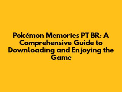 Downloading and playing Pokémon Memories PT BR can be a rewarding experience for any Pokémon fan. By following the steps outlined in this guide, you can ensure a safe and enjoyable journey into a unique and exciting Pokémon adventure. Happy gaming!