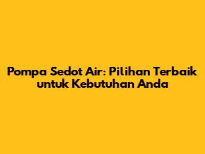 Pompa Sedot Air: Pilihan Terbaik Untuk Kebutuhan Anda
