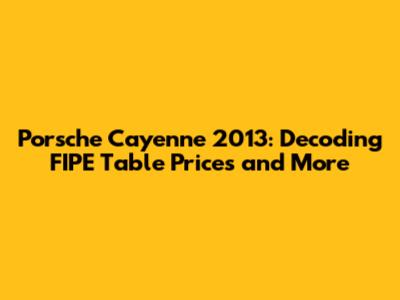 Hey guys! If you're diving into the world of the Porsche Cayenne 2013, one of the first things you’ll probably want to get your head around is the FIPE table. This table is like the Rosetta Stone for car prices in Brazil, especially when you're looking at used models. So, let’s break down what the FIPE table is all about, how it affects the Cayenne 2013, and everything else you should consider before making a purchase. Grasping the nuances of the FIPE table ensures you're not just getting a great car but also a great deal. For those unfamiliar, the FIPE table, maintained by Fundação Instituto de Pesquisas Econômicas (FIPE), provides average market prices for vehicles in Brazil. These prices are meticulously calculated based on data collected from various sources, reflecting real-world transactions. This makes it an invaluable tool for buyers and sellers alike, offering a benchmark for fair pricing in the used car market. Understanding the FIPE table is essential because it serves as a reference point in negotiations. When buying a used Porsche Cayenne 2013, the FIPE table price is a reliable starting point to assess whether the asking price is reasonable. It helps prevent overpaying and ensures you're getting a fair deal relative to the car's market value. Moreover, financial institutions often use FIPE table prices to determine the loan amount they're willing to approve for vehicle purchases, as well as for insurance purposes. Insurance companies rely on these values to calculate premiums and coverage amounts. For sellers, knowing the FIPE table price can guide them in setting a competitive and attractive price, increasing the likelihood of a quick and successful sale.