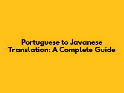 Portuguese To Javanese Translation: A Complete Guide