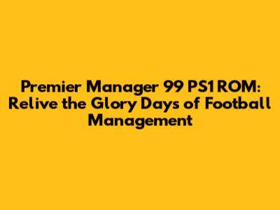 Even after all these years, Premier Manager 99 holds a special place in the hearts of gamers. Its deep gameplay, realistic features, and addictive career mode made it a classic of the genre. And with the help of emulators and ROMs, you can still experience the magic of this game today. So, what are you waiting for? Download the Premier Manager 99 PS1 ROM, set up your emulator, and get ready to lead your team to victory!