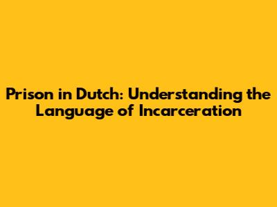 Prison In Dutch: Understanding The Language Of Incarceration