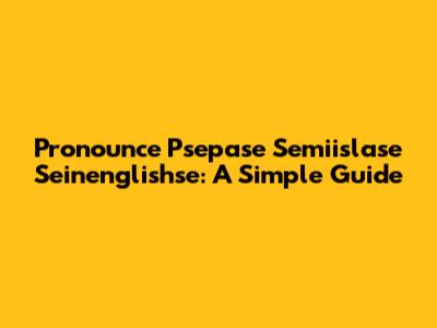 Pronounce Psepase Semiislase Seinenglishse: A Simple Guide