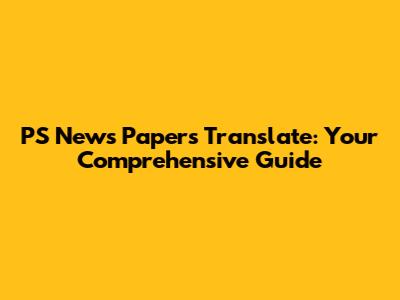 PS News Papers Translate: Your Comprehensive Guide