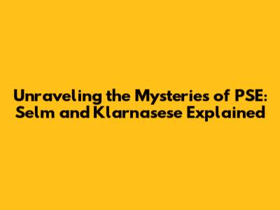 Unraveling the Mysteries of PSE: Selm and Klarnasese Explained