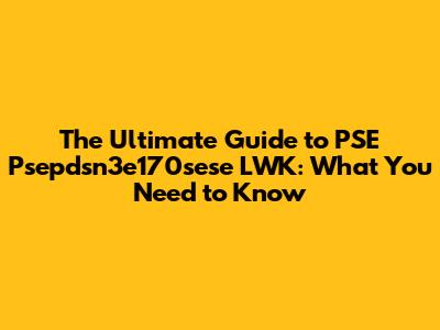 PSE Psepdsn3e170sese LWK: A Comprehensive Guide