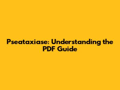 Pseataxiase: Understanding The PDF Guide