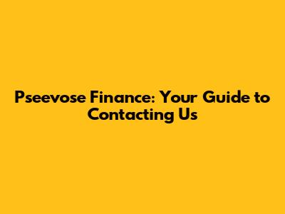 Pseevose Finance: Get In Touch With Us