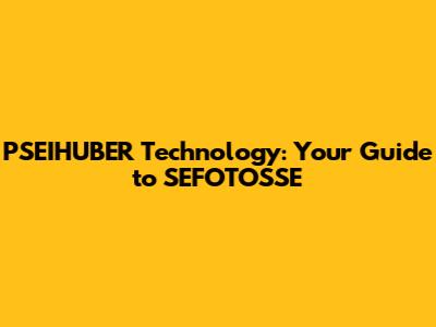PSEIHUBER Technology: Your Guide To SEFOTOSSE