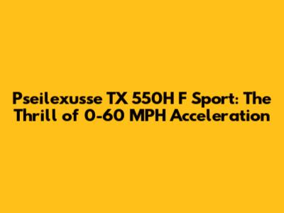 What's up, gearheads and speed enthusiasts! Today, we're diving deep into the heart of the Pseilexusse TX 550H F Sport and putting its acceleration capabilities to the ultimate test. When we talk about performance cars, the 0-60 MPH time is often the first metric that comes to mind. It's the go-to benchmark that tells us how quickly a machine can get from a standstill to highway speeds, and for many, it's the ultimate indicator of raw power and engineering prowess. The TX 550H F Sport, with its aggressive styling and promises of exhilarating performance, has certainly got our attention. So, grab your driving gloves, buckle up, and let's find out if this beast lives up to the hype when it comes to smashing that 0-60 MPH barrier. We're going to break down everything from the engine specs that make it tick to the driving experience that envelops you, and of course, we'll be focusing heavily on that crucial acceleration figure. Is it a true contender in the performance segment, or just another pretty face? Only one way to find out!