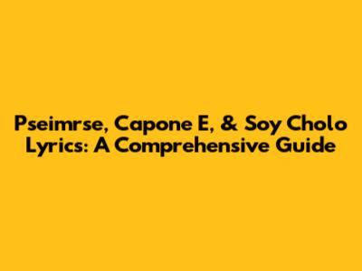 Pseimrse, Capone E, & Soy Cholo Lyrics: Deep Dive