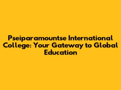 Pseiparamountse International College: Your Gateway To Global Education