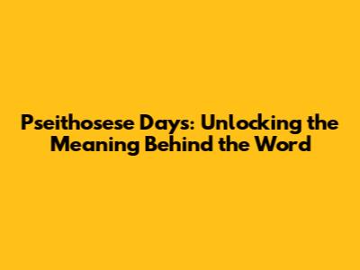 Pseithosese Days: Unlocking The Meaning Behind The Word