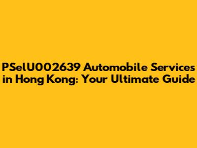 Hey guys! Welcome to a comprehensive guide about everything related to PSelU002639 automobiles in the vibrant city of Hong Kong. If you're a proud owner of one of these awesome cars or are thinking about getting one, you're in the right place. We'll dive deep into the world of PSelU002639 automobile repair, maintenance, and the various services available to keep your ride running smoothly and looking its best. Hong Kong's bustling environment demands reliable transportation, and we're here to help you ensure your PSelU002639 is always up for the challenge. Whether you're dealing with a minor issue or need a major overhaul, this guide is your go-to resource. We'll cover everything from finding the best repair shops to understanding the importance of regular maintenance. Let’s get started and explore how to keep your PSelU002639 in tip-top shape!