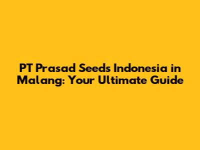 PT Prasad Seeds Indonesia In Malang: Your Ultimate Guide