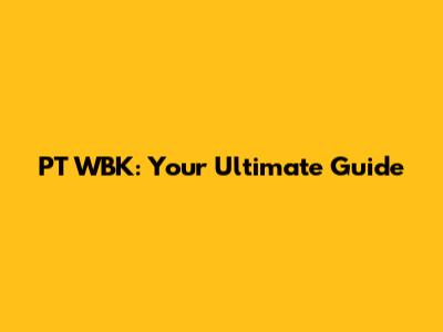 PT WBK: Your Ultimate Guide