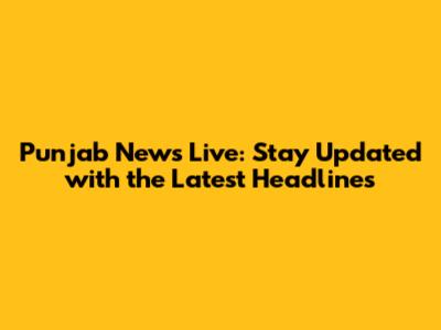 Punjab News Live: Stay Updated With The Latest Headlines