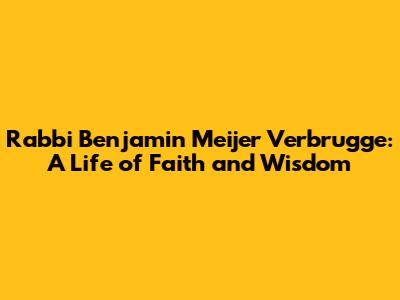Rabbi Benjamin Meijer Verbrugge: A Life Of Faith And Wisdom
