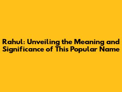 Rahul: The Meaning Behind This Popular Name