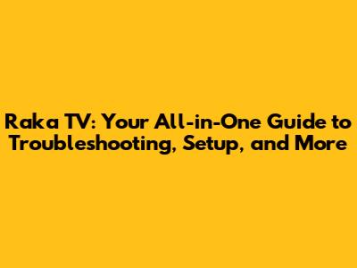 Raka TV: Your Ultimate Guide To Troubleshooting, Setup, And More