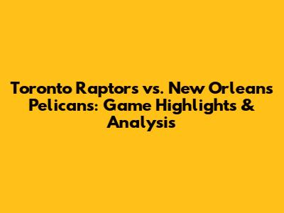 Raptors Vs. Pelicans: Game Highlights & Analysis