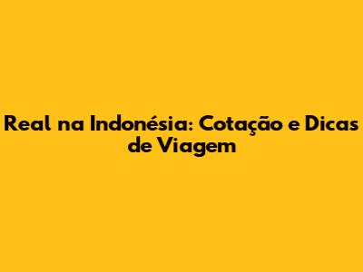 Real Na Indonésia: Cotação E Dicas De Viagem