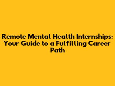 Remote Mental Health Internships: A Comprehensive Guide