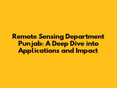 Unveiling the Remote Sensing Department Punjab: An Overview