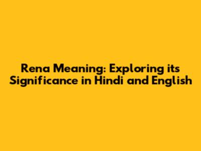 Rena Meaning: Exploring Its Significance In Hindi And English