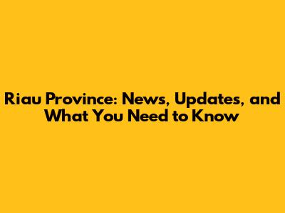 Riau Province: News, Updates, And What You Need To Know