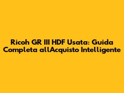 Ricoh GR III HDF Usata: Guida Completa All'Acquisto Intelligente