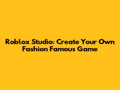 Roblox Studio: Create Your Own Fashion Famous Game