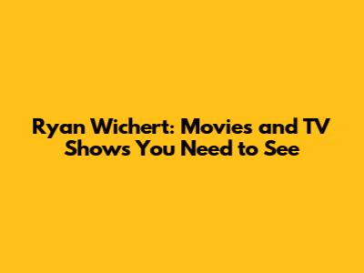Ryan Wichert: Movies And TV Shows You Need To See