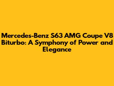 Hey there, car enthusiasts! Ever dreamed of gliding down the highway in a machine that perfectly blends raw power with unparalleled luxury? Well, the Mercedes-Benz S63 AMG Coupe V8 Biturbo isn't just a car; it's an experience. This sleek two-door coupe takes everything you love about Mercedes-Benz and cranks it up to eleven. From its snarling V8 engine to its opulent interior, the S63 AMG Coupe is a statement. Let's dive deep and explore what makes this beast so special, shall we?