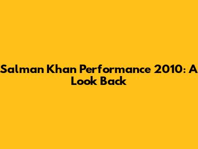 Impact and Legacy of Salman Khan's 2010 Performances