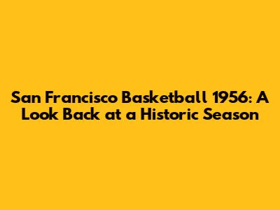 San Francisco Basketball 1956: A Look Back At A Historic Season