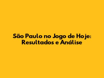 São Paulo No Jogo De Hoje: Resultados E Análise